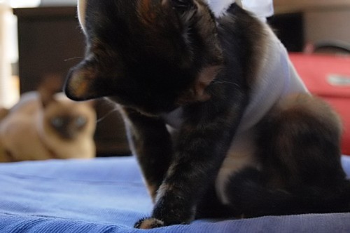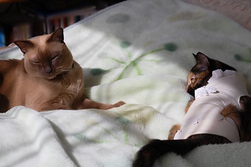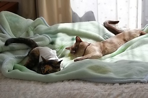 あと一週間で抜糸です。元気に 王子様ネコ を追いかけられるようにしっかり回復しようね♪