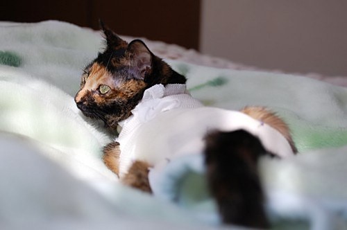 そろそろお年頃の モコ は、18日の日曜日に避妊手術を受けました。