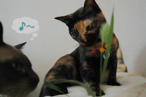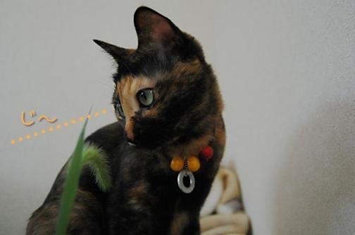 右手にネコジャラシ。