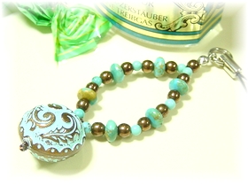 年配の男性へのプレゼントです。青銅風アクリルパーツとターコイズ、チェコビーズを使っています。実はダンナからの依頼品で、退職される上司へ贈りたいということでした。とても気に入っていただけたようです(^ー^)