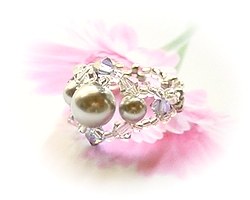 SWパール(ライトグレー)を使った簡単モチーフリングです。ネックレスに用意した8ミリと5ミリパールが残ったので、何か簡単なものをと作ってみました。