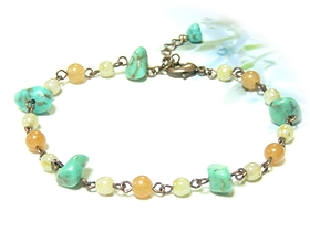 この夏最後かな?ターコイズってやっぱり夏物のイメージかも。チェコラウンドとアベンチュリンでつなげただけです(^^;日焼けした肌に、よく馴染みます。もう少しの間、使えそう(笑)