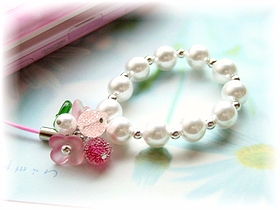 ケータイを替えたので、ストラップを作ってみました。?才のおばちゃんが持つにはちょっと可愛らしすぎるかも…(^^;