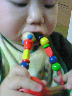 今日は、何だか、早寝のゆっき~まんでした~。昨日は、PM10時近くになっても寝なくて。。。朝寝が、3時間もしたせいですな~(==;今朝は、遅くまで起きなくて。。。(==;保育園から、“この時期は、朝寝は短めに。。”と、言われました。。今度から短めにします。。(反省そういえば、うちの職場の託児所でも、1歳近い子達に、朝寝は短めにしていきましょう、って、言ってたな~てのを思い出しました。。。まったく、育児が出来て無い母で、申し訳ない。。ゆっき~まん。。今日は、写真が取れなかったんで昨日のを。。。おもちゃを( ̄~ ̄) モグモグ...です。。。。 “僕のおもちゃだから取らないで~” “お風呂の様子見なきゃ~”(なんで、おもちゃくわえてんだか。。) 最近、よく歩くようになりました~が、良い画像がとれません。。。んでもって、なにか、口にくわえて無いと歩けないゆっき~まん。。。あと10日くらいで、歩けるようになるんでしょうか???