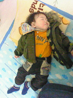 今日は、祖母の13回忌のため実家に帰ってきました。今日は、最高気温が上がらないということで、ストーブ&ファンヒータ2個あっても、阿蘇の昔の家はさむ~ございました~~~その中、息子は大ハッスル。。お坊さん(今回はお坊さんの奥さんが来たけど)が、お経読んでるのに、みんなの数珠を取ってまわって、ダンス。。。。数珠と頭と手を、ブンブン振りながら。。。しまいにゃ、鐘を叩きに行こうと前進したため、足を引っ張りとめました。。その後も、接待してるのに、大騒ぎ。。お帰りの前に、お茶を入れたいけど、その頃には、寝愚図り。。。ま、すんなり寝てくれたんで、お茶の準備とお見送りも出来ました。寒かったんで、たくさん着せて寝かせてたら、暑かったらしく、1時間も寝ないで起きちゃって。。。“まだ眠いよ~”と、機嫌悪くなっちゃって、そのまま、お家に帰りました~。帰りの車では、爆睡してくれてよかったです。。で、帰って、夕飯の準備したりしてたら、おとうちゃんからメール。。。。おとうちゃん:“夕飯要らないから~”私:ん???“何で??”メールを返す。おとうちゃん:“下痢と嘔吐で食べれない・・・うどん買って帰る~~”って。。。。(==;また???嘔吐下痢????あれって、1回かかれば、かからんのじゃなかったかな??前回の時よりは、きつく無いらしいけど。。。ほんと、結婚してから、体調悪くするな~何が悪いんでしょうか???私の元気を分けてあげたいです。早く良くなれ!おとうちゃん!!
