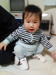 今日、たっちが長く出来たよ^^それに続けて、1歩、歩けたよ~~こりゃ、お誕生日前に歩けるかな~~^^