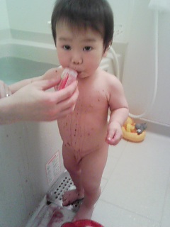 今日は、おとうちゃんはお休みありがたいことです。。。感謝で、お迎え行ってくれて、夕飯の準備してくれて、お風呂に入ろうって事になったんですが、おとうちゃん:“ウェルチ飲むか~?ゆっきまん??”ゆっきまん:“????????”おかあちゃん:“お風呂上りに、水分補給で飲ませればいいじゃ~ん”って、言ったんですが。。。。おとうちゃん:“いや、お風呂上がったら、洋服が汚れるお風呂入る前に飲ませる”で。。。。めちゃめちゃ、こぼれてます・・・・裸だからいいんですけどね・・・ あまり、飲んでないけど、満足君です。。。こぼす事が、楽しくなった様子。。。(==;おとうちゃんも、苦笑です。。 で、最後に。。。。満足スマイルです。。。あ!ヌード、公開です(^m^)正面は、お初ですな(〃∇〃)キャキャほんと、おとうちゃんもゆっき~まん、何考えてんだか・・・。明日は、半日!頑張ろう!!仕事終わったら、ダイエットのために、運動に行ってきま~~っす!頑張りましょう!!