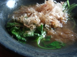 ※*※*※*※*※*※*※*※*※*※*※*※*※*※*※*※*※*※*※*※*※*※*※去年、初めておでん屋さんに連れて行っていただいた。連れて行ってくださった方が大学時代から通っていたというというお店。大きなコの字のカウンターがあって、半分はお座敷。若い子から年配の方まで幅広い客層。安い。美味い。そして、地元の人たちにとっても愛されているお店なんだなー、ということがわかる雰囲気のいいお店。「どて焼き」という豚肉に白みそタレがかかった生まれて初めて食べる料理にも遭遇。ご飯は「茶めし」。どれも美味しかったのだれど、一番感動したのが「三つ葉」。出汁でさっと煮たものに、鰹節がふんわりかけてある。三つ葉といえば、茶碗蒸しやお吸い物、和えものに少しだけ入っているイメージだったのに、それは三つ葉一把くらいを(贅沢にも)束ねた量。時々、あのお店のおでんを思い出す。そしてあの三つ葉も。そして時々私も作ってみる。あのお店のはもっとたっぷりの三つ葉だったけれど・・・。花冷えのような日に、あのお店で熱燗を一杯やりたいなあ・・・。※*※*※*※*※*※*※*※*※*※*※*※*※*※*※*※*※*※*※*※*※*※*※ template design *ann