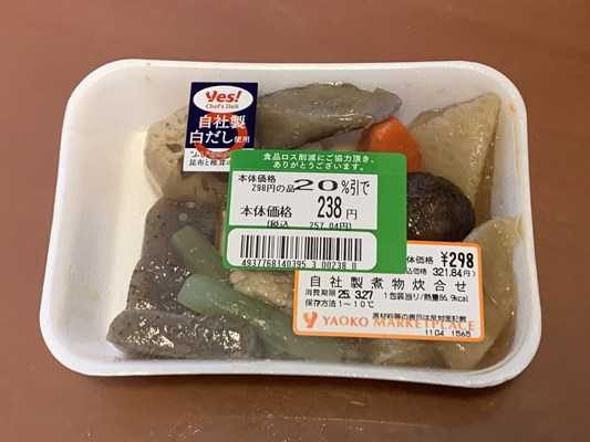 商品研究 「ヤオコー」の「自社製煮物炊合せ」本体価格298円を試食「ヤオコー」の「自社製煮物炊合せ」本体価格298円を試食します。蓮根や鶏肉、蕗、大根、椎茸、ごぼう、こんにゃく、人参などが入っていて、まあ、一人前として完結しています。パック詰めの作業点数は多くなりますが。
