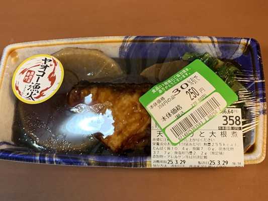 商品研究 「ヤオコー」の「天然ぶりと大根煮」本体価格358円を30%引きにて購入して試食「ヤオコー」の「天然ぶりと大根煮」本体価格358円を30%引きにて購入して試食します。大根はよく煮てあるけど、鰤は粉を打って揚げて煮ている感じですね。マルエツの鰤大根のほうが好みです。