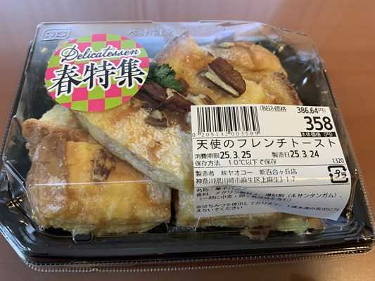 商品研究 「ヤオコー」の「天使のフレンチトースト」本体価格358円を試食「ヤオコー」の「天使のフレンチトースト」本体価格358円を試食します。ふわふわのフレンチトーストでキャラメルの風味でなかなかおいしい。