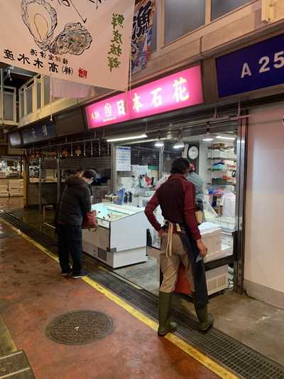 牡蠣専門仲卸業者「日本石花」を訪問横浜中央卸売市場本場に来たので、牡蠣専門仲卸業者の「日本石花」を訪問しました。こちらが河合社長です。オイスターバーの依頼はぜひ、私にどうぞ