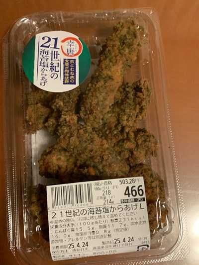 商品研究 「ヤオコー」の「21世紀の海苔塩からあげL」本体価格100gあたり218円、Pあたり466円を試食「ヤオコー」の「21世紀の海苔塩からあげL」本体価格100gあたり218円、Pあたり466円を試食します。見た目は悪いけど、なかなかおいしい。