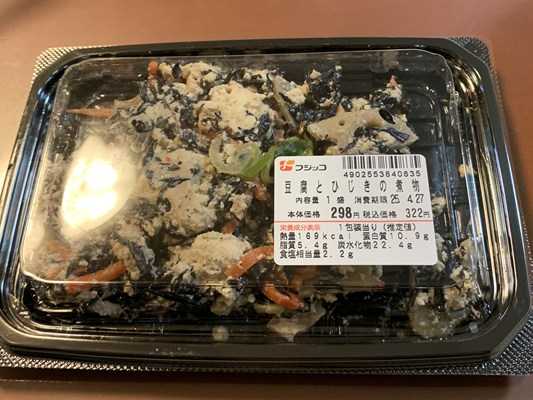 商品研究 「スーパー三和」の惣菜売場にあった「豆腐とひきじの煮物」本体価格298円を試食「スーパー三和」の惣菜売場にあった「豆腐とひきじの煮物」本体価格298円を試食します。フジッコとのアウトパック。味はしっかり目ですけど悪くないと思います。