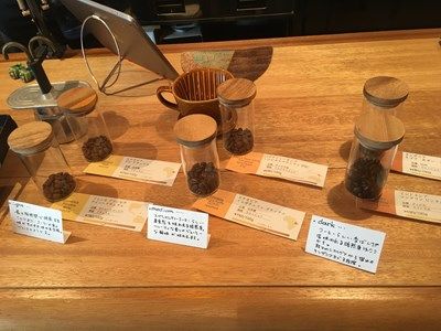 店内で飲むコーヒーは、ライト、ミディウム、ダークのサンプルから選びます。