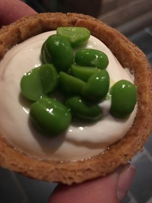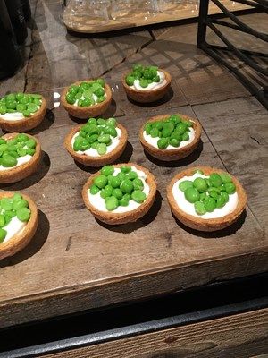まずは、グリーンピース、ドライトマト、燻製ヨーグルトをのせた小さなタルトからスタートです。