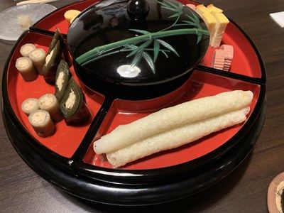 紅と黄色の蒲鉾。黄色は玉子です。