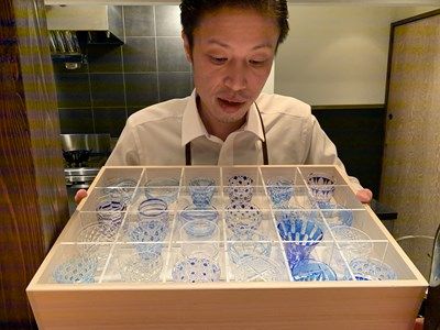 続いてのお酒にあわせて江戸切子の堀口切子と呼ばれます酒器を選びます。
