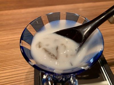 とてもクリアなコンソメと海老芋の海老海老コンビ。