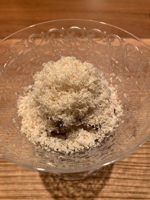 粉砕したフォアグラのテリーヌをかけた富田農園の黒無花果