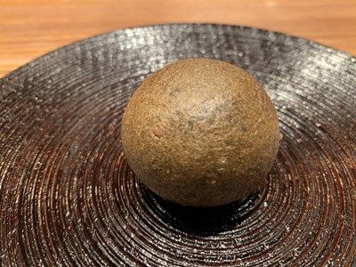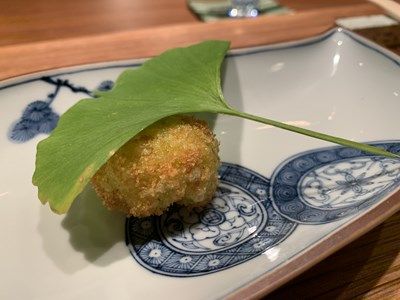 唐墨のパウダーがとても印象的で銀杏餅はかなりもっちりしています。