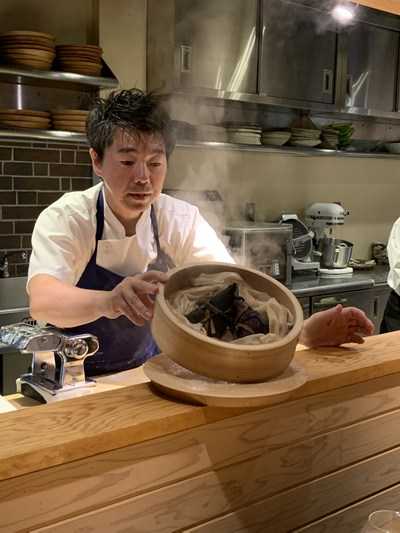 本田シェフ自家栽培小麦を使った麺料理は夏野菜のトマトの冷製パスタ
