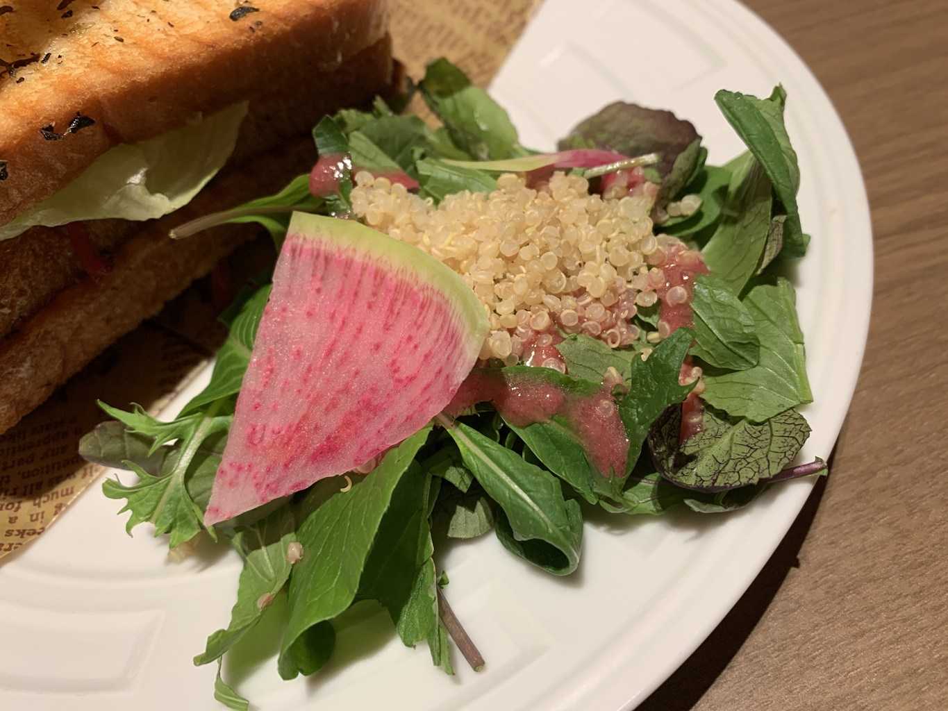 パンのテクスチャのあと、全方位的な味わいがとてもうまっいサンドイッチです。