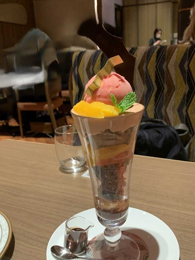それで、おやきカフェの参考になるかは別として、こいけさんのInstagramの投稿でモンブランパフェが気になっていて、麻布台ヒルズにある「パティスリー&カフェ デリーモ 麻布台ヒルズ店 」予約しました。
