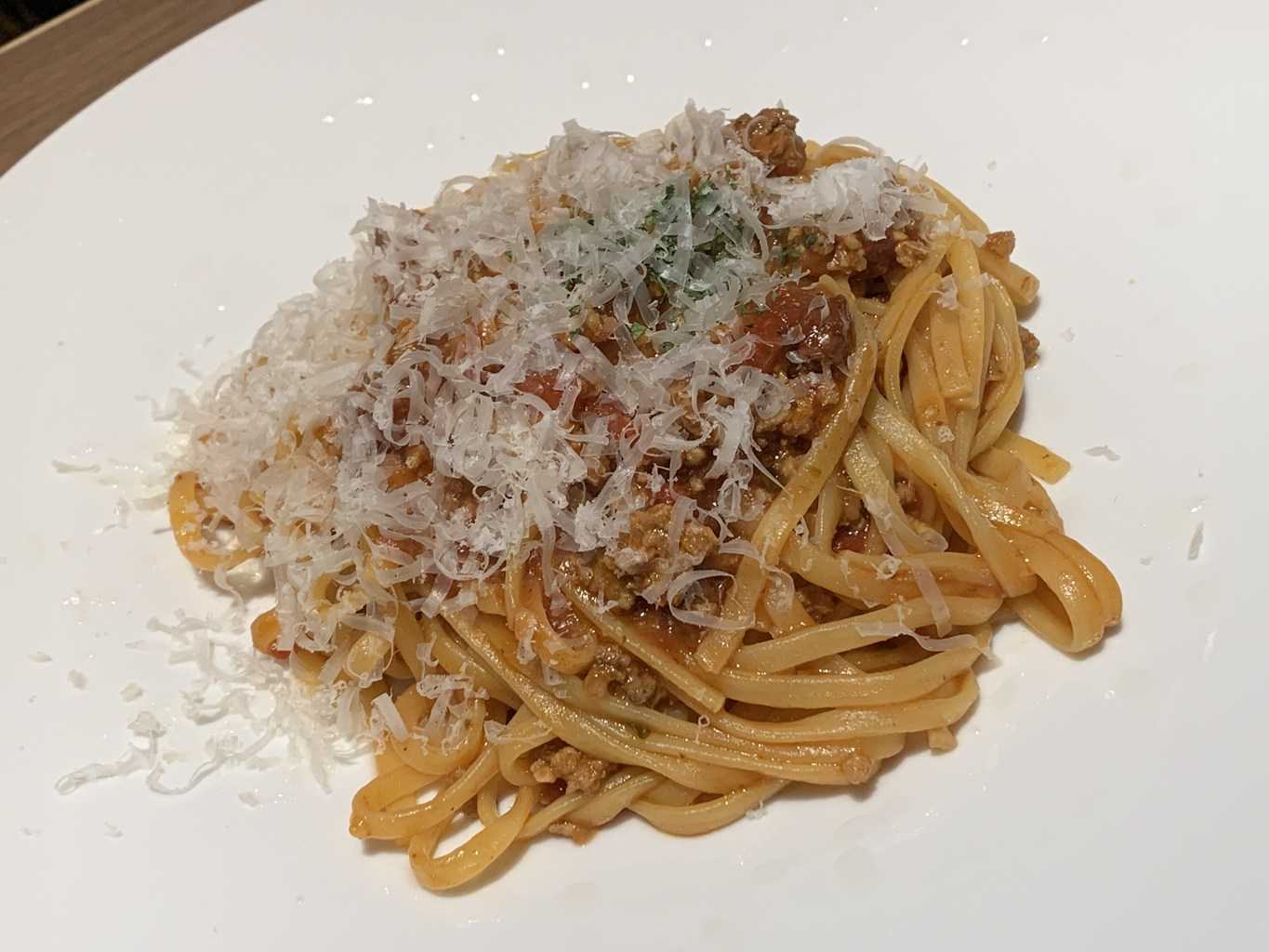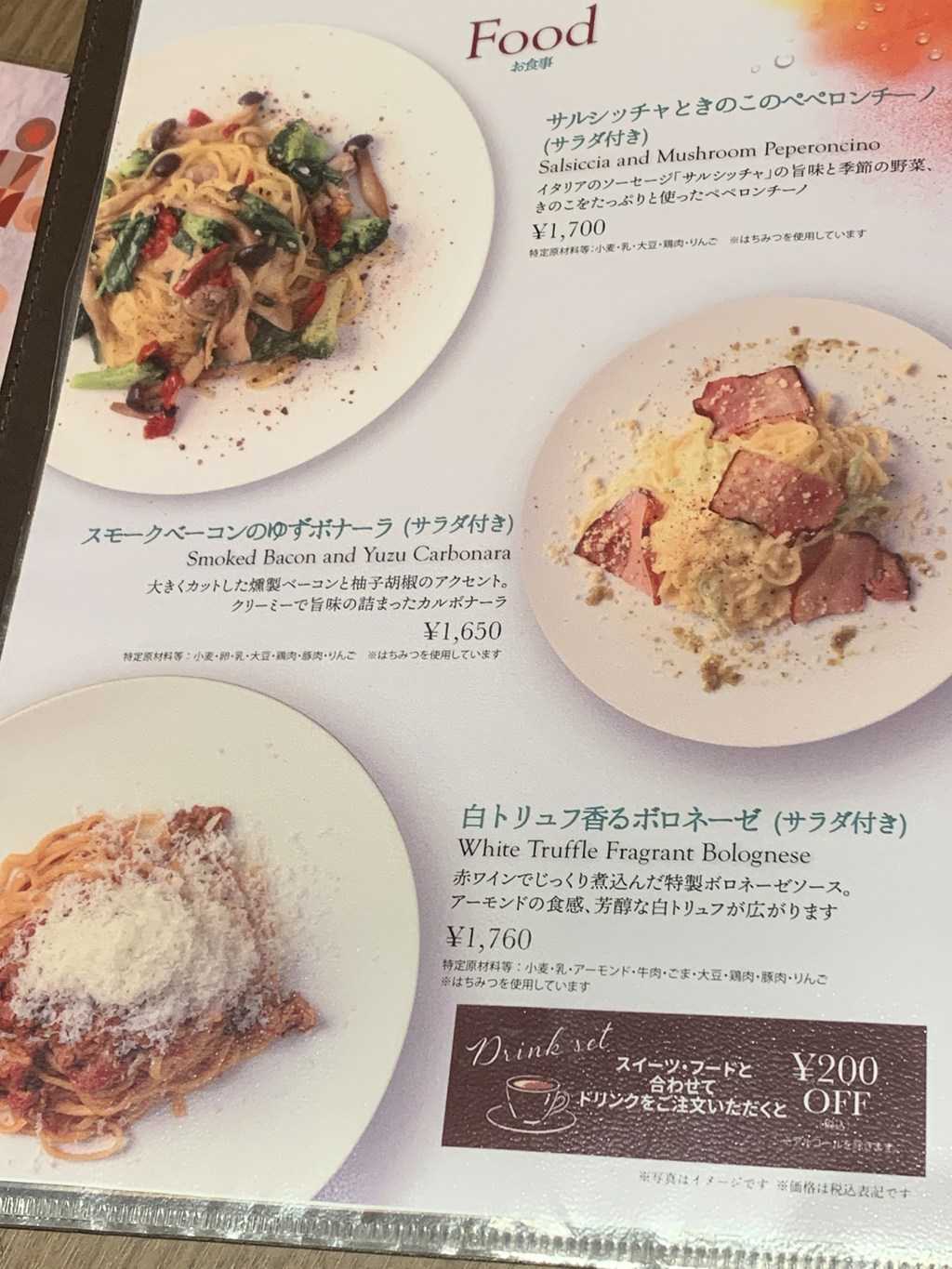 原さんは「白トリュフ香るボロネーゼ(サラダ付き)」税込1,760円とグランドメニューのパフェを注文していました。
