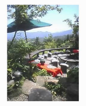 東京からみっちゃんがお泊りに来た。田舎でリフレッシュ・・・・・ってことで、今日のお昼は、県境まで足をのばして・・・・・私のとっておきスポットへごあんな~~い!!『景色がごちそう!縄文ご飯!!』縄文村 ごちそうはこんな景色~~。みっちゃん大感激!ちょ~ベジタブル!!こんなへるし~ご飯のバイキングですよ~~~!店長さんいわく『海の雑草』の煮びたし、そこらの草のおひたし、ちしゃもみ、ナスの煮付け、やまぶき・ごぼう・大根などなどのババさん煮物、山芋の天ぷら・タラの芽の天ぷら、採れたて野菜のサラダなどなど・・・・・ご飯は縄文、赤米と玄米ご飯の2種類が用意されてて・・・・・みっちゃんはことのほか、らっきょがお気に入りのようで・・・・・い~っぱい食べてた(笑)よぉ~~く冷えたビール・・・・・アペリティフみたいなほんのり甘いお酒~~・・・・吹き抜ける風・・・・・風にそよぐ新緑・・・・小鳥のさえずり・・・・・ゆっくりと静かな時が流れ・・・・・最高だね!!時おり店長の弾く、お世辞にも上手とはいえないピアノが拍手を誘う・・・・自然に癒され、やさしい心になれる・・・・・・のどかな、のどかなお昼のひと時でした~~♪♪