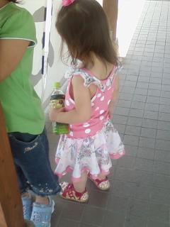 ついに長い夏休みが終り、新学期です。長女さんは昨日の夜まで宿題・・。小学校2年生にしては相当な量だったと思います。計算問題1枚につき100問が裏表計40枚。昔の夏休みの友みたいなもの。1学期の計算ドリルに直に書き込み。毎日の日記。あと人権標語、平和学習作文。多すぎ 最後の二つが残っているのは私も知っていたのですが・・放置して旦那に任せちゃいました。。。。(家族で考えて学習しなければならないのです) 私に 旦那が終わったよ~と報告。宿題に取り掛かり20分もせずにですよ??長女に本当に終わったか問い詰めると、うつむいて黙っていました今朝登校まえに全ての荷物が揃っているか確認を・・・ッと発見。作文・・・・・・・旦那の字だもう、見なかったことにして、そのままもって行かせました . 今日はNAA。まだ暑いのでこれを着るのは早いのですが 夢がとっても気に入っていて勝手に着替えてしまいます。。。。。