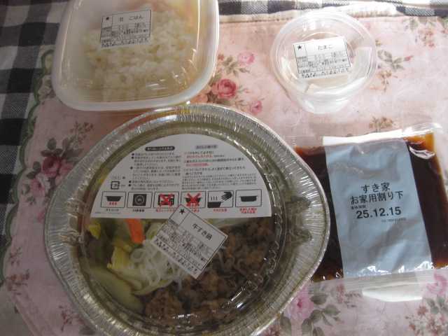 ああやっと牛すき鍋定食を買ってきてくれました。北郷に新店ができたそうです。ちなみにテイクアウトは割り下がついて家で煮込むらしい。晩御飯用になりました。なんでもオープン記念で赤い箸をもらってきました。そうそう、すき家の「や」は屋ではなく家でしたね。