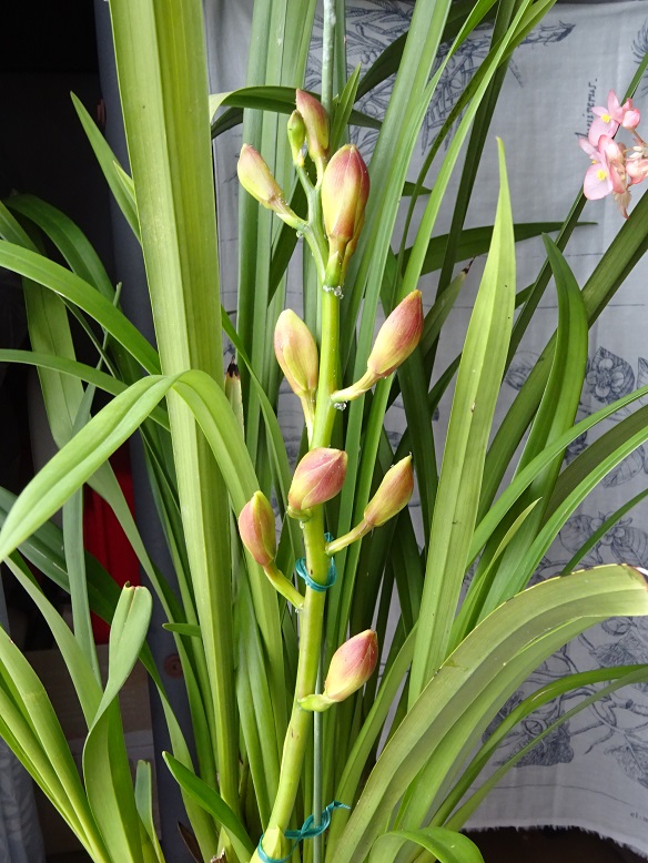 エキナセア今年はもう終わったかと思ったら1本だけひょろ~と伸びてきて咲きました間が空いて咲くとまた可愛いですねマリーゴールド・ストロベリーブロンドこの子はほんとに茎が弱くてよろよろ咲くけど、この素敵な色が見れただけでも良し!と🎵写真ではなかなか深い紅が写りませんね息子から貰った我が家の唯一のシンビジュームミマスウィーツ「セレブの集い」なんと!蕾が5本も出てるじゃありませんか!!楽しみ~🎵さっそく支柱を立てて少しずつ誘引していきます12月になったら部屋に入れます