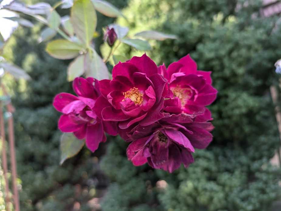 つるバラの誘引は時間と労力がかかりますね💦我が家の暴れん坊のひとつのアルバーティーン Albertine 1921年(ウィクライアーナランブラー)バラも蕾もキュートで可愛いけど四方八方に伸びる!伸びる!何とかアーチに寄せてみたけど果たしてどうなるか??密には咲いてくれないバラです