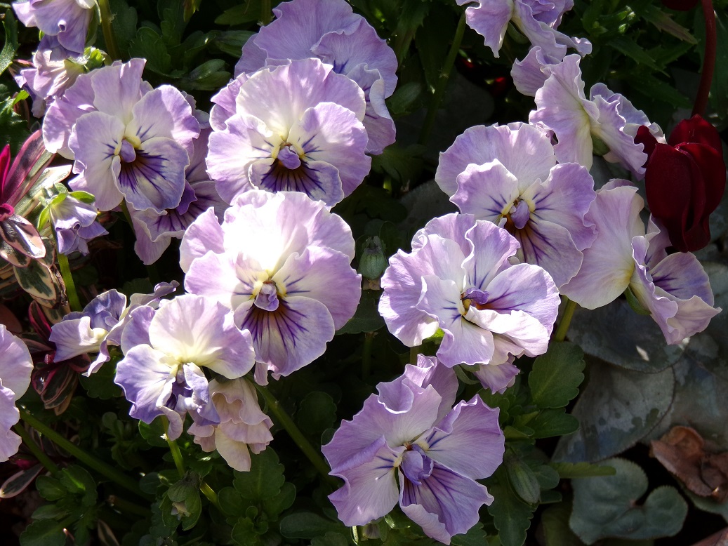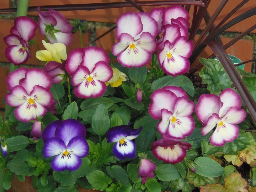 今年はビオラの種を蒔かなかったので、パンジーやビオラをお店でいろいろ買いました単独で可愛くて気に入ったものや寄せ植えに他の植物と色合わせして買ったりしたので植えて1ヶ月経って寄せ植えがいい感じに仕上がってきてます♪1ポット3色ミックスをそのまま植えても素敵な配色1株で色んな色が楽しめるビオラ大きな鉢の寄せ植え、みんな元気!もこもこオレガノさんと一緒に淡いパープル系にまとめましたハボタンと同系色のほふく性ビオラ・ラズベリー