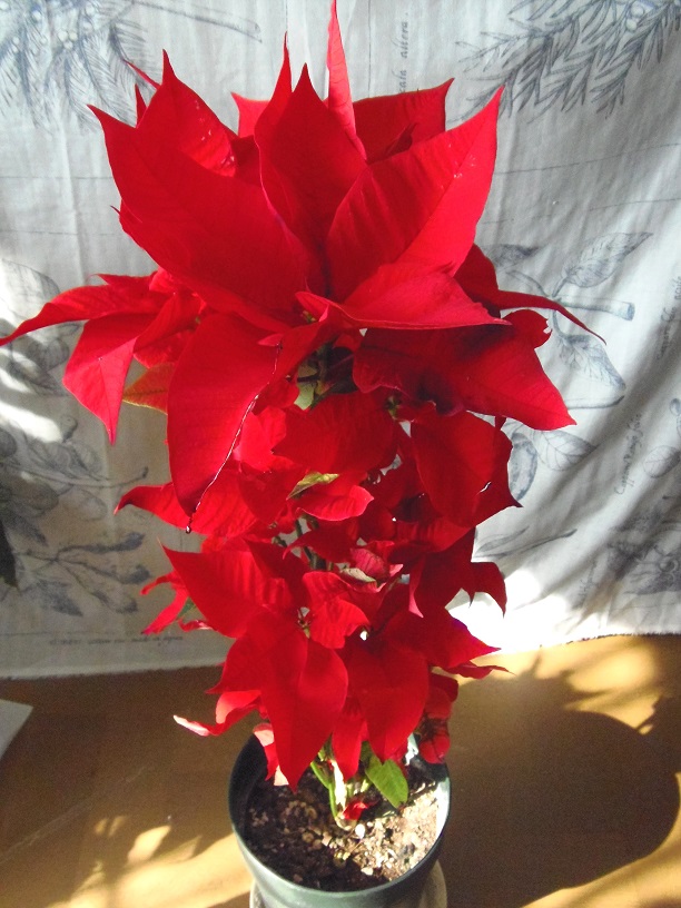昨日近くの花屋さんに行って年末に店頭に売ってあったポインセチアはまだありますか?って聞いたら店頭ではなく少し離れた花置き場からこのポインセチアを持ってきてくれましたなぜ今頃?!って思いますよね!それが~この前何かで背の高いポインセチアを見てめちゃめちゃカッコ良くて一目惚れ私も高く育ててみたくなっちゃったんですよこれも50cmくらいあるけど出来たら1メートルちょいくらいの高さにしてみたいです!以前一度枯らしてしまったことがあるので今度は頑張りたいですポインセチアは宿根なので暖地では地植えでも出来るらしいけどこちらではどうかな?取り合えず鉢植えで1年何とか育ててみます🎵この赤いポインセチアも売れ残りで格安にしてくれたのにさらに!下のピンク色のプリンセチアをおまけで貰っちゃいました🤣ラッキー!ラッキー!