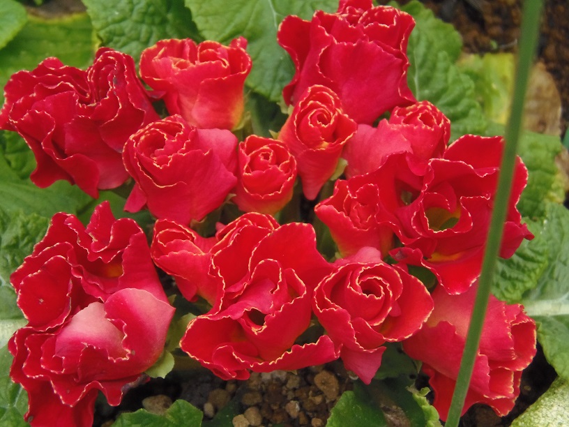 今朝は水も氷るような冷たさだったけどお昼はグングン気温が上がって小春日和もうこのまま春になってくれないかな~バラ咲きのプリムラジュリアンが鉢の上からビニールで防寒してるのでとっても綺麗に咲いてます赤い花びらの縁がゴールドで華やかぁ~~ビニールの中でピンク色も元気ですバラの剪定を始めましたクリスティアーナ剪定後これから少しずつやっていきます♪