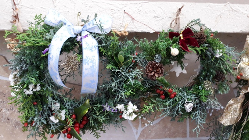 昨日は友達5人でクリスマスリース作りをしました我が家のお庭のコニファーブルーアイス、パープルフェザー、エメラルド、ブルーバードやクリスマスホーリー、ローズヒップなどいろいろ持って行きました友達はサツマスギや松ぼっくりなどのオーナメントをみんなで持ち寄ってたくさん素敵なリースやスワッグが出来ましたよ🎄記念撮影でパチリ私が作ったのはこちら家に早速飾りました紙コップの土台に差し込んで作ったミニクリスマスツリー🎄クリスマスリーススワッグはお庭のアーチにみんなでワイワイ作るのはほんとに楽しいです