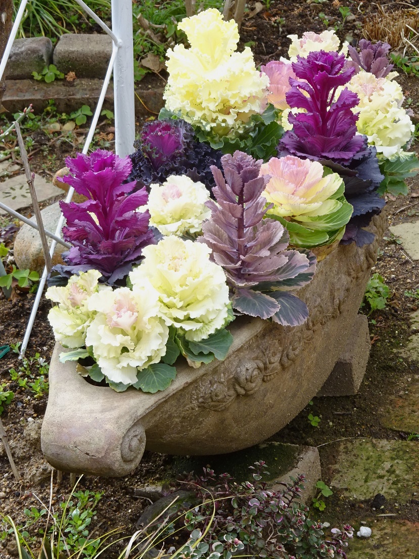 3月ともなるとハボタンが急に伸びてきましたでも私的はこの頃のハボタンの色が最高に好きキャベツの仲間とは思えないこの美しさでも来週から気温が高くなるので蕾が上がってきそうですね綺麗なのが沢山あるので、今年は種取りしようかな?お気に入りの鉢植えコーナー