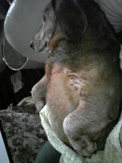 今週の木曜にやっとスネ吉くんを洗いました。天気がいいときでないと風邪をひかせてしまうのです。ちなみに今日は雨なので犬小屋に引っこんでいます。風呂で洗ってるときは暴れに暴れるので写真はとれないので、風呂からあがったところをぱちり。まだまだ完全に乾いてないので不機嫌です。ゴールデンレトリバーみたいな大きな犬は水浴び好きらしいんだけど、うちのは異常なくらい濡れるの嫌がるんですよね。でも、洗わないとくさいし。。。虫がいっぱい寄ってくるんですね。不衛生なのもかわいそうですからね。嫌がっても汚れたら洗わないと。。。目やにと耳あかとるのも、暴れる暴れる。。。暴れまくって疲れたのか、私の手からはなれたら、ぐったりして日向ぼっこしておりました。とにかく早く乾かしたいらしい。年とったせいか、寝る時間長くなったような気がします。それではまた(*^^)v