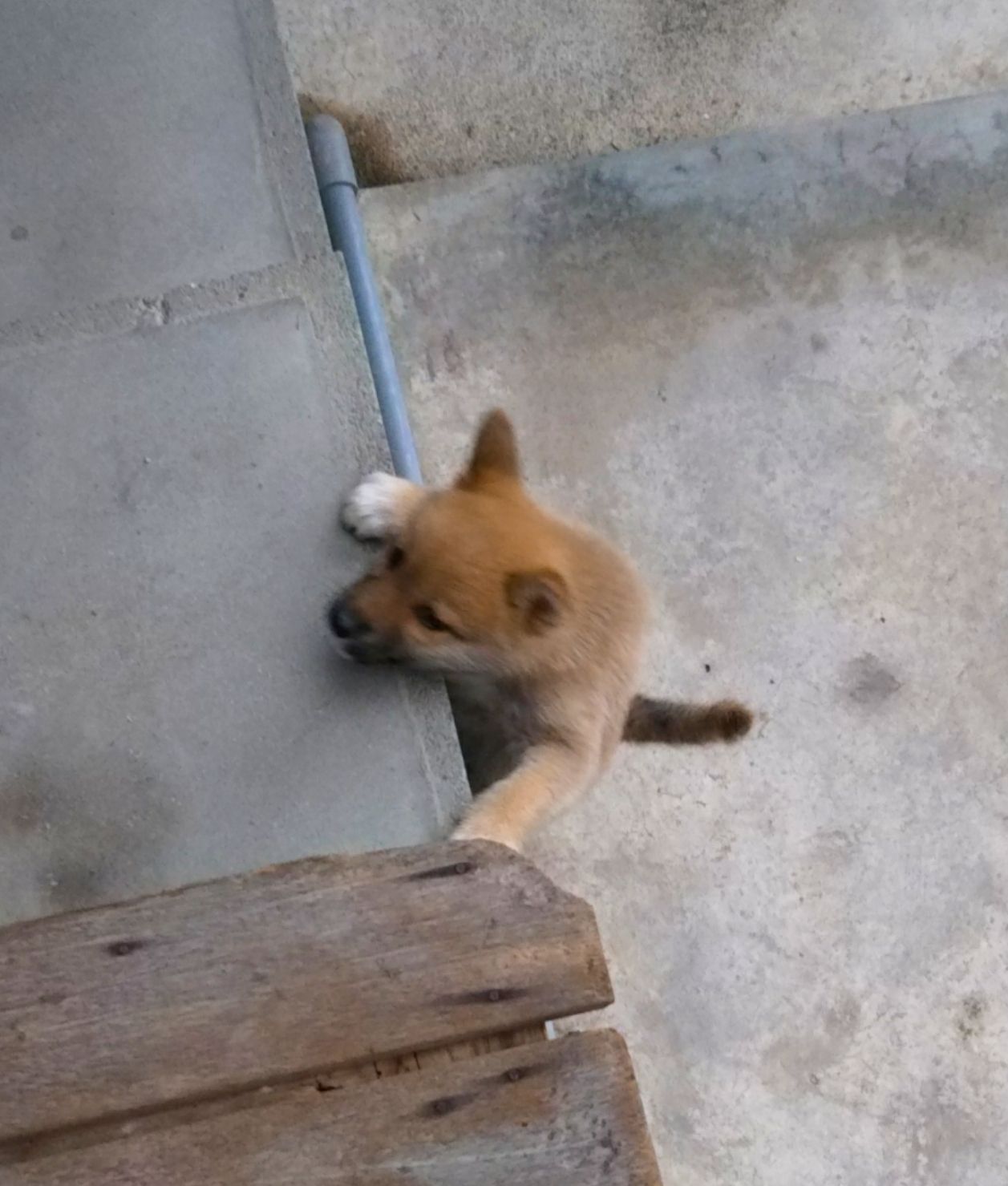 まだちっちゃいチャチャマルは、段差が苦手。降りれても、同じ場所を登れない…😅