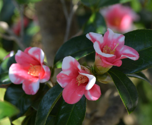 (今、真っ盛りの胡蝶侘助) 今日は、我が家の美人さん紹介の第三弾!!椿の仲間たちです。この絞りの椿は、玄関前に咲いているので、一番目立つかも・・・・ この写真のように、絞りの中に、赤の花も交じっています。 それから、これは、小さな株なのに、大きな花を咲かせる「桃太郎」是非とも、地植えにしてもらいたい花なのですが、今のところは、無理・・・ そうそう、一昨日あたりから、ようやく咲き始めたのが、私のお気に入りの「乙女椿」 一度、この花の中心がどうなっているのか、調べたことがあったのでした。 これは、そろそろ時期が終わりかけている椿。中心部分が、なかなか綺麗です。 あ、この椿は、実はまだつぼみ。去年の画像を載せています。 こちらは、父が咲くのを楽しみにしていた椿。お隣から苗をいただいた「藪椿」です。 ローマン・ヒヤシンスの横に落ちているのが、この椿の花。 椿の花は、地面に落ちてからも、なかなか華やかです。