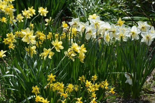 今日は、今我が家の庭で真っ盛りの、水仙たちのご紹介です。 メインの庭にも、駐車場の横にも、西側の庭にも、いろんな水仙がいっぱい。 一番多いのが、このミニ水仙かも・・・南側の庭に咲いているので、花はみんな南を向いています。つまり、居間から見ると、後姿・・・というわけ。 しかし、庭の中央の通路よりも家側に咲いているものなら、ちゃんと、お顔が見えますよ。 中には、こんな変わり者が・・・・毎年見つかるのですが、この場所の細い葉の水仙は、花びらの枚数をあまり気にしていないの。5枚や4枚、たまには3枚のものも見つかるのです。 プランターにも、母が植えていますよ。 上のプランターで咲いているこのお花も、ついでにご紹介。これは、ヒヤシンスなのですが、一般的なダッチ・ヒヤシンスとは違い、フランスで品種改良されたローマン・ヒヤシンスですよ。 花がまばらで、草丈も小さいけど、とても丈夫で、どんどん増えるのです。 この、青と紫の感じが大好きです。