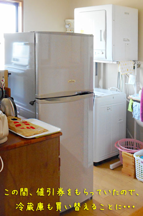 この間、洗濯機を買ったときに、期間限定の値引き券をもらっていた・・・それで、心が動いて、やっぱり買ってしまいました。それは、これ。冷蔵庫です。 冷蔵庫は割と軽かったので、ここまで動かして、床と壁、そして冷蔵庫の裏も拭き掃除しました。この冷蔵庫は、結婚した時に買った家電の一つ。つまり35年目。洗濯機の方は、最初が二層式、そして全自動にして、それからドラム式を二台。で、この間タテ型の全自動にしたので、結婚から5台目ですね。それに比べて、冷蔵庫の方は、35年間ずっとだから、優秀。これまで、高さ150cm、幅54cmだったのを、少し小さいのにしましたよ。この冷蔵庫は、上にオーブンレンジを置いても大丈夫なタイプなのだけど、オーブンレンジの方が幅が広いので、載せるのはやめました。冷蔵庫の上とオーブンレンジの上に載せた扉付きラックは、以前から子供部屋にあったもので、最近は大した物を入れていなかったの。もったいないので、食器類やお茶、コーヒー豆などのストックを入れるのに使うことにしました。レンジと冷蔵庫の微妙な背の高さの違いは、大量にあるかまぼこ板で調節しています。そして、レンジのところで滑らないように、耐震用の滑り止めを敷いています。使い勝手が良くなるといいな。あ、台所にはちゃんと大きな冷蔵庫がありますよ。夕食の支度をする時には、そちらの冷蔵庫の中身を使っているので、二階の冷蔵庫には、旦那のビールとアイス、ペットボトル類、チーズやバターくらいしか入れないので、小さいので十分なんです。では、今日の庭の様子から。ミヤコワスレは、とってもキュートです。