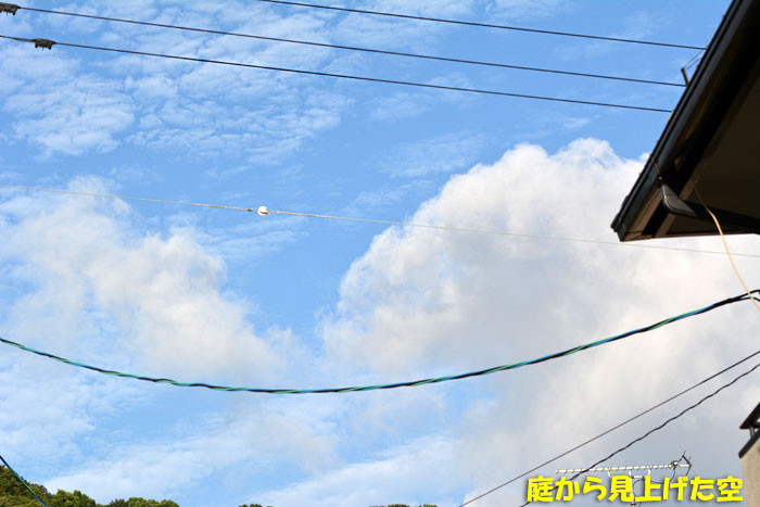 朝起きたら、まず空を眺めました。台風の影響はあるかしら??なんだか、とっても爽やかな空です。 あとから曇ってきたりするのかな?今日は午前中は普通のオカリナ、午後はトリプルオカリナの日でしたので、準備していたアメのかごを忘れずにもっていきましたよ。いつも野菜をくれる人には、みんなと同じかご以外に、こんな紙袋入りの塩あめもあげました。塩あめ3個が入って、これくらいです。午前の人達にも、午後の人たちにも、とっても喜んでもらえました。さて、庭の花たちです。昨年まで、「アマクリナム」と書いていたのだけれど、今回調べたら、どうもベラドンナリリーみたいな気がしてきました。よくわからないですよね。球根を買ったのは母。何だったのか、すっかり忘れてしまっているので、姿から検索するしかありません。そして、これも、毎年、「ゼフィランサス」だったか「ハブランサス」だったかわからなくなるもの。ネットで調べると、どちらも出ているから悩ましい。間違えて表記している人がとても多いということです。それでは、今日のご飯コーナー珍しく赤味噌で煮込みを作りました。以前「ガッテン!!」で紹介されていたから買っていた赤味噌ですが、どうも味に慣れなくて、容器の半分以上残っているの。そろそろ消費しなくては、と思って使いました。そして、珍しく、残してしまいました。午後の部のオカリナサークルが終わってから、残りは頂きましたよ。それから、これは昨日の昼ごはんです。のせるのを忘れていました。そういえば、私がこの日記にお弁当というか、お昼ご飯などを載せ始めたのが5月のはじめでした。その頃からおつまみのおやつと甘い飲み物をやめて、ここにのせているような食事を続けていたわけですが、血液検査の結果がとてもよくなり、体重も毎月1kgずつくらい減ってきています。腹囲も5cmくらい減りました。遅い朝ごはん(昼ご飯みたい)と、遅い昼ご飯(夕ご飯かも)の二回の食事にしていますが、とても体調がよく、うれしいです。最近買った手のマッサージ器で体調を整え、脚のマッサージ器で血行をよくし、左の股関節の軟骨を守りたいと思っています。