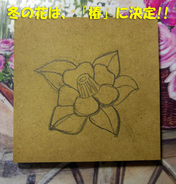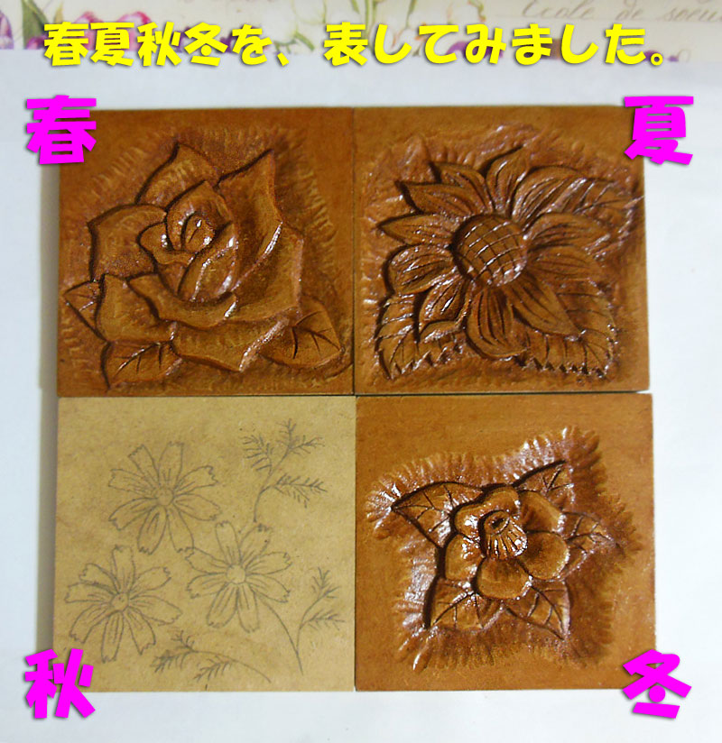 それで、あとは、秋の花のコスモスを彫ってから、