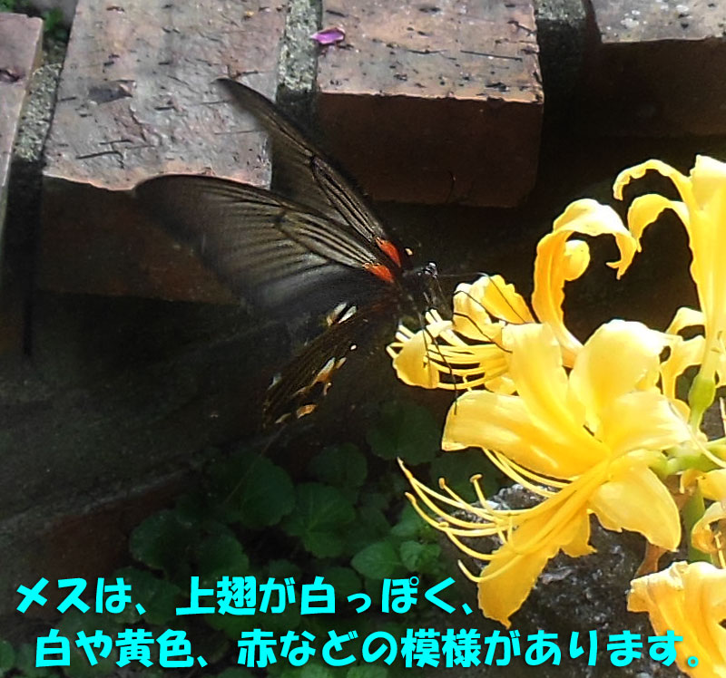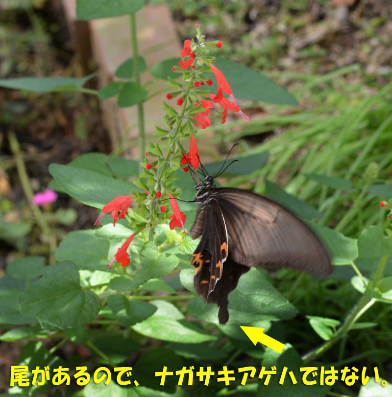後ろ翅の先に、尾があるのでわかります。(ナガサキアゲハには尾がない)