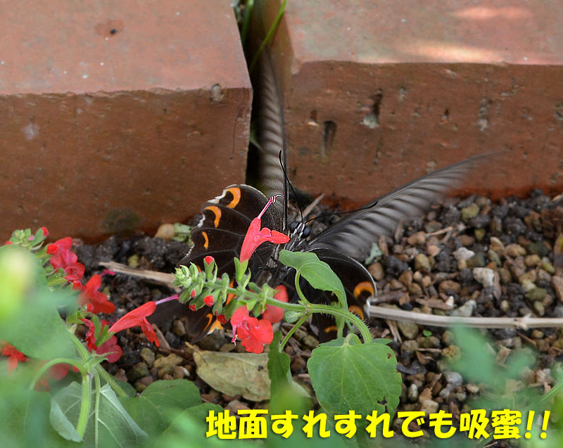 こんな地面すれすれのところでも、花にぶら下がりながら、必死で吸っていましたよ。
