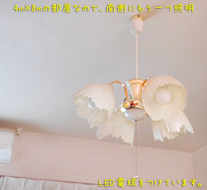 そうそう、私の部屋は、南北が8mで、東西が4mの長い部屋なので、照明がもう一つつけてあります。