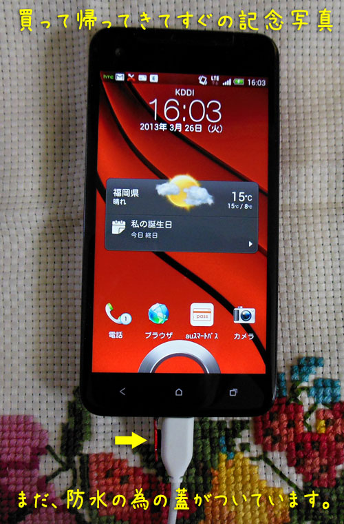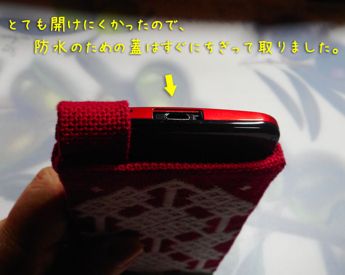 このスマホ、防水なのだけど、そのために充電の穴の蓋が強力すぎて、開けるのが大変でした。それで、一か月もしないうちに、蓋を切り取ってしまいましたよ。(だから、開きっぱなし)